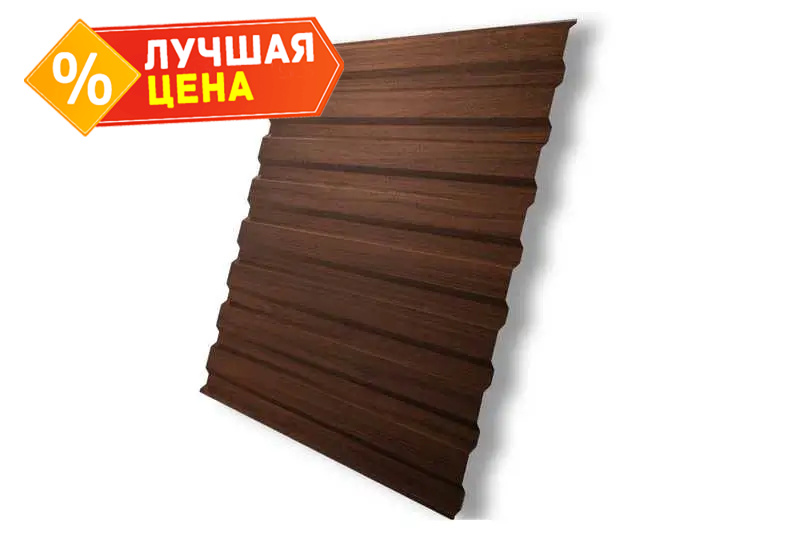 Профлист изготовлен из высококачественной стали толщиной 0.45 мм, что обеспечивает ему прочность и долговечность. Он имеет специальное покрытие Choco Wood, которое придает ему элегантный и стильный внешний вид.