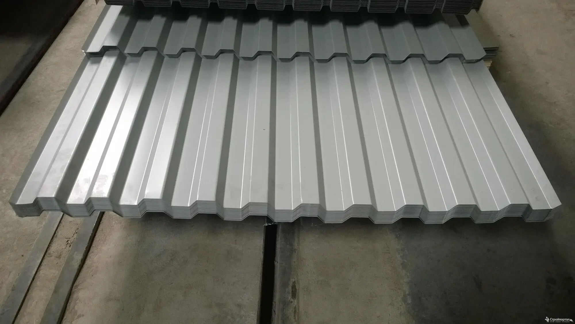 Профнастил – это крупные листы разной толщины, выпускаемые производителем из гнутого железа без нагрева на станках – холодным способом. На поверхности каждого листа имеются рёбра жёсткости – волны. Получаются они после проката на оборудовании, их высота и форма зависят от назначения и типа стройматериала.